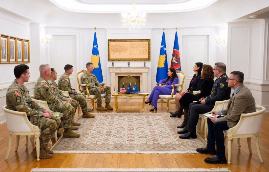Presidentja, Vjosa Osmani, ka pritur të hënën në takim lamtumirës komandantin në largim të Komandës Rajonale Lindje të KFOR-it, kolonelin Jonathan Lloyd nga Garda Kombëtare e Louisianës, si dhe pasuesin e tij, kolonelin Sam Sargeant.